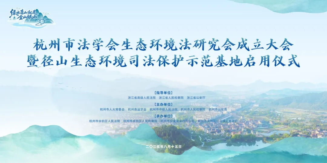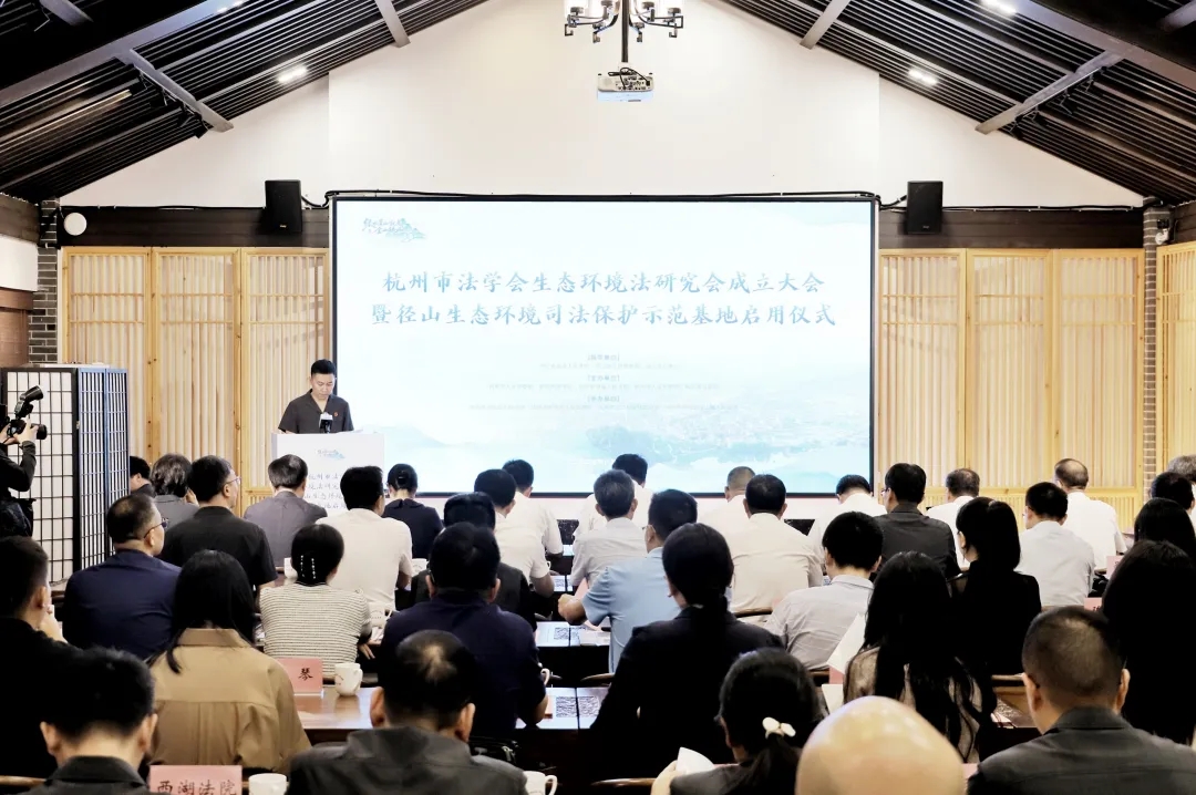生态环境法研究会成立大会暨径山生态环境司法保护示范基地启用仪式在杭州市余杭区径山镇举办。省高院、省检察院、省公安厅有关部门负责人,市人大常委会办公厅、市中院、市法学会领导,市中院、市检察院、市公安局、市生态环境局、市园林文物局、市文化广电旅游局有关部门负责人,余杭区领导、淳安县法院院长,部分市法学会会员,杭州各基层法院分管院领导及余杭区有关部门负责人等参加。