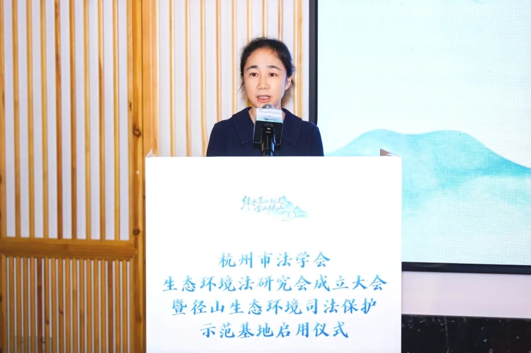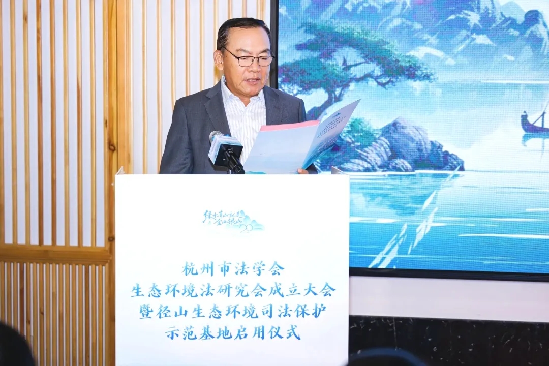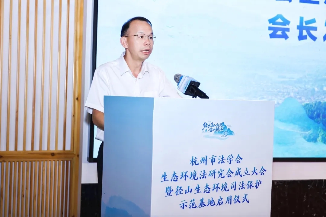 生态环境法研究会会长,杭州中院党组成员、副院长毛煜焕作表态发言。副会长、浙江工商大学法学院教授徐祥民发布了杭州生态法治创新事例。