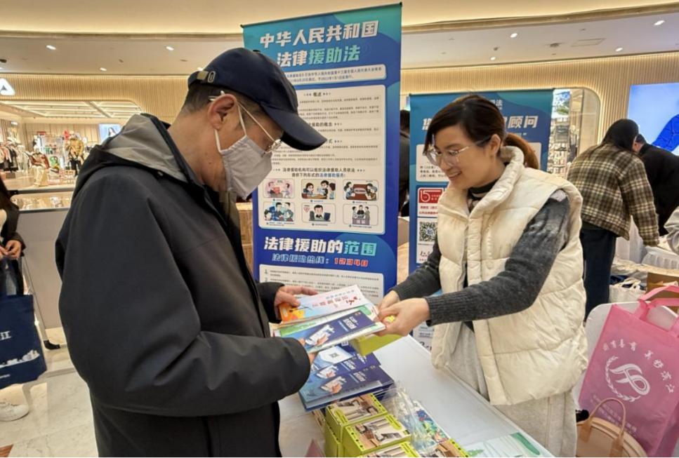 与主会场的庄重氛围相呼应,滨江宝龙城分会场的平安法治市集人气爆棚、热闹非凡。法治问答墙前,市民纷纷驻足,认真阅读墙上张贴的各类法律知识题目;互动游戏区前,市民争先体验“法治投壶”“锤锤乐”等互动游戏。此外,18个部门的工作人员支起普法摊位,为市民提供现场法律咨询和法治宣传服务。在区法学会的摊位上,工作人员为群众递上“全民法理通”应用的宣传折页,现场演示应用的使用方法,并引导群众遇到法律问题时通过该平台在线咨询法律问题。